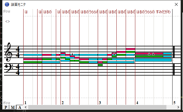メロディをコピペして @T-3 で移調したモノを重ねました。なんか黒鍵がやたら増えましたねー。