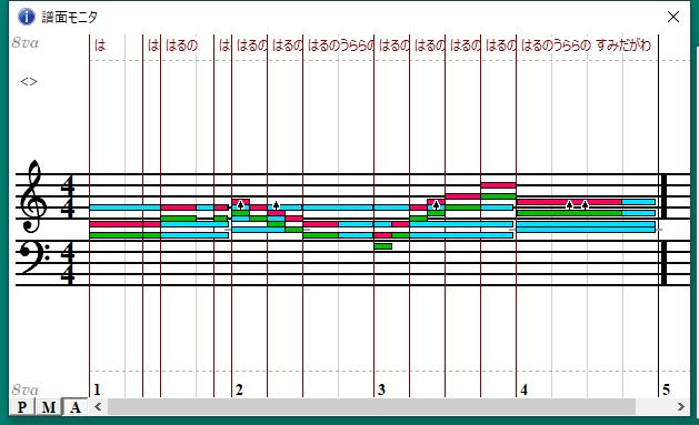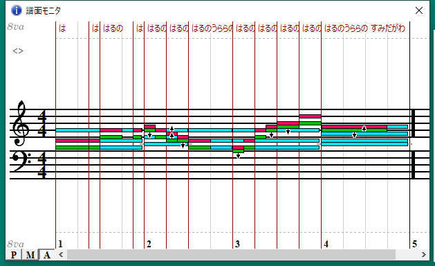 これもコーラスパートだけ鳴らしてみると解りますが、なーんか歌いにくい部分がありますね。「はーるのー」の「の」あたりなんて音を掴みにくく無いですか? この部分の伴奏には無い音だからなんですよね。